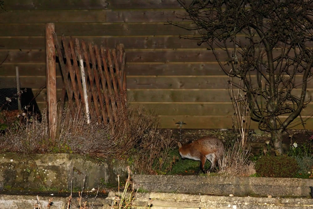 It's been too wet to go outside to try to catch a glimpse of the local foxes, but the signs are that they are still around somewhere. This is beginning to turn into the longest fox-free period (photographically) in over 3 years of documenting the garden foxes. I did manage a few photos on New Year's Eve, but since then, nothing beyond some very brief observations and this one shot from January 2nd.