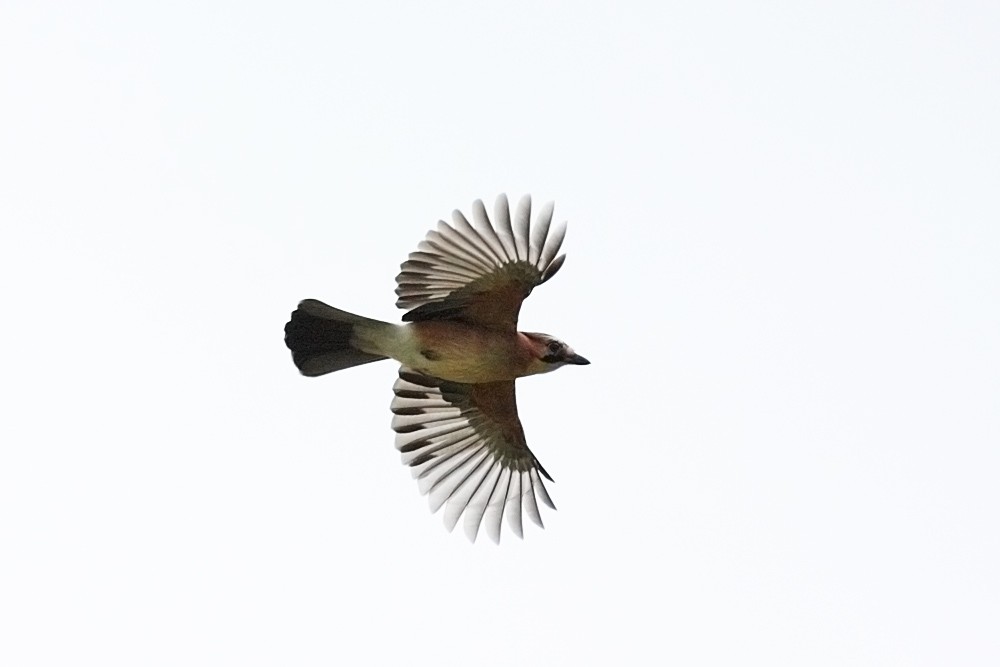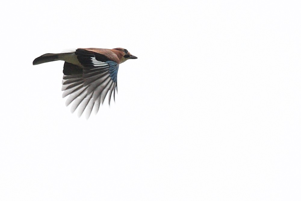 I've never been able to get more than a snatched shot of a jay in a tree, and then usually through a thicket of twigs and branches. They are great looking birds, but until now somewhat elusive so far as I'm concerned. They don't come near our garden and sightings have generally been infrequent. But they are very active at the moment where I work, and seeing them on the wing is simply a matter of waiting a few minutes. These were taken just outside my office at lunchtime today.