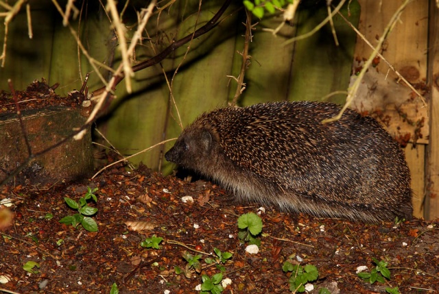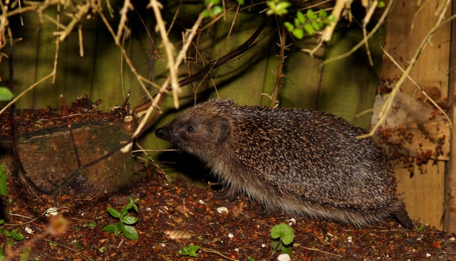 Tonight, in the garden, three hedgehogs were on the prowl. Two were snuffling noisily under the deeper shrubs, out of sight of the camera. The third, a youngster ventured out into the semi open (I was at ground level).