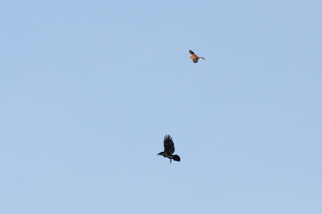 1. 😆 That kestrel must be very territorial 😛 Not wise to fight with a local bully (crow) 😀
