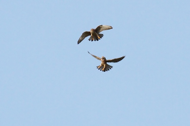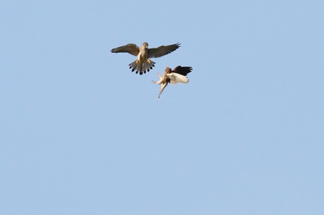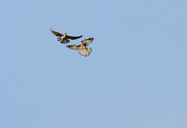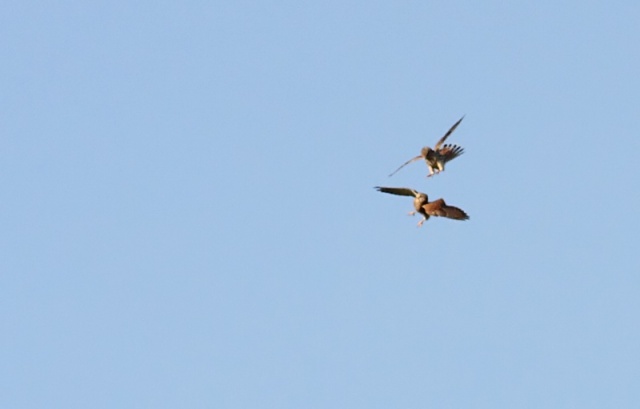 After all the recent mobbing posts by UKWildlife, I came across my own version of the game today. This time it was a kestrel being mobbed by a… kestrel. I was a long way off and so the photos aren't up to much but you'll get the picture.