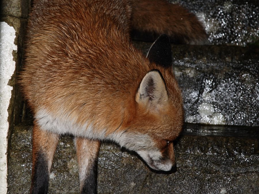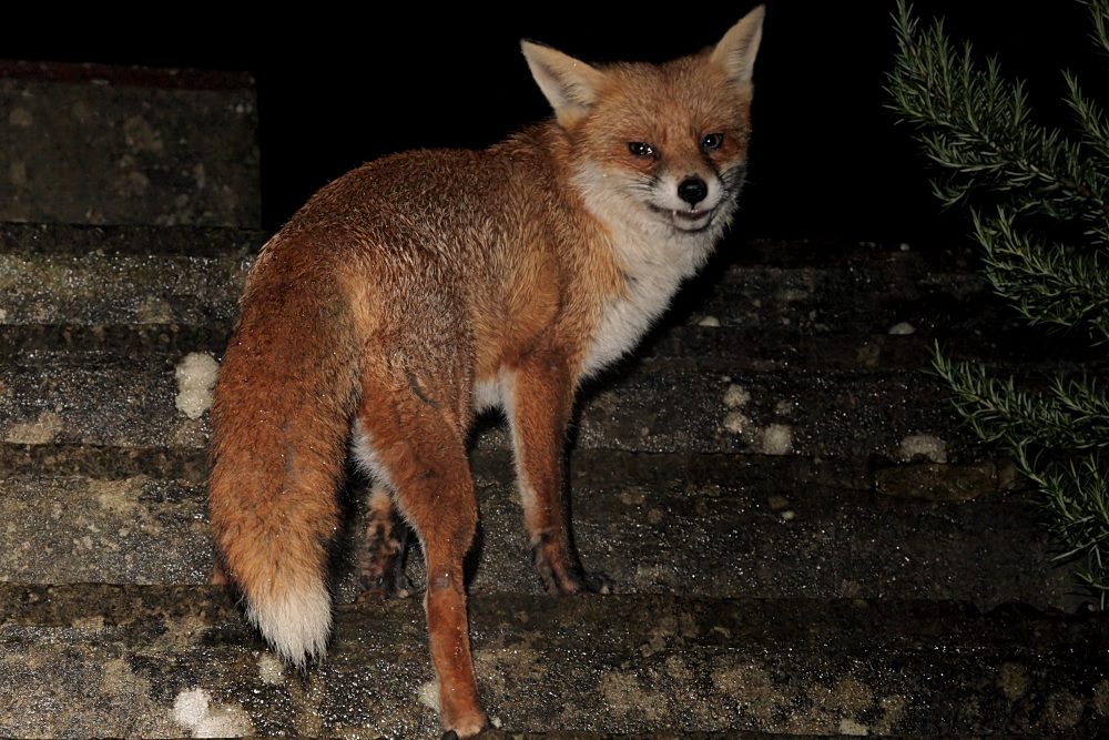 I couldn't see them (the noise was coming from a neighbouring garden), but we are now bang slap in the middle of the mating season. Whether or not that's what I heard I can't be sure. After a few minutes, the sounds ceased and a familiar face appeared from the side of the house. Coincidence? Possibly. There's more than one fox around here, and he wasn't telling. But it gave me a chance to grab a few quick photos which I've added to the Fox Watch 2008 album.