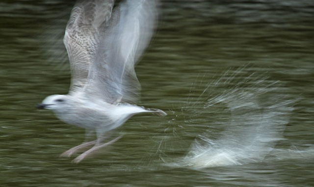 A change of tactic. Having spent days struggling with the late autumn gloom and cranking the camera up to gain some sort of shutter speed, I reversed everything today. I decided to stop fighting the elements and let the light work for me. I dropped the ISO down to 100 (even in normal conditions I tend to set it at 400-640) and decided to see what I could get shooting with a slow shutter speed. The gulls were cooperative.
