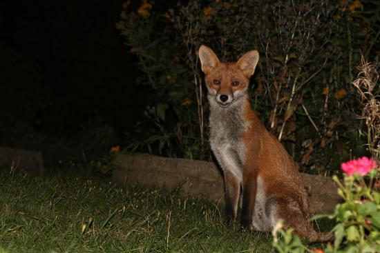 No such problem with the larger mammals though. They'll happily pose for the camera, and after a break of several days the young fox was back this evening exploring the garden after dark. His limp seems to have completely healed, and apart from some scratches on his leg he looked fine and was happy to wander around. No need to rush shots with him. I even had time to go inside to change the camera battery. Oh for a sparrowhawk that would allow that luxury!