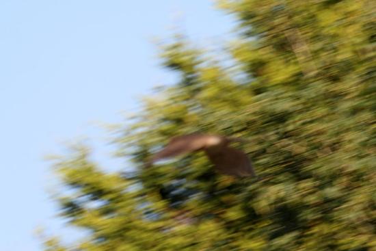More often the problem is that you don't see the moment coming. About a week ago I was in the garden when a sparrowhawk flashed along its length. I was quick, but not quick enough as you can see by this blur. No time to focus, no time to track the flight and no time to adjust any of the camera settings to give even a modicum of hope of capturing anything viewable. Sparrowhawk in flight (take my word for it!)