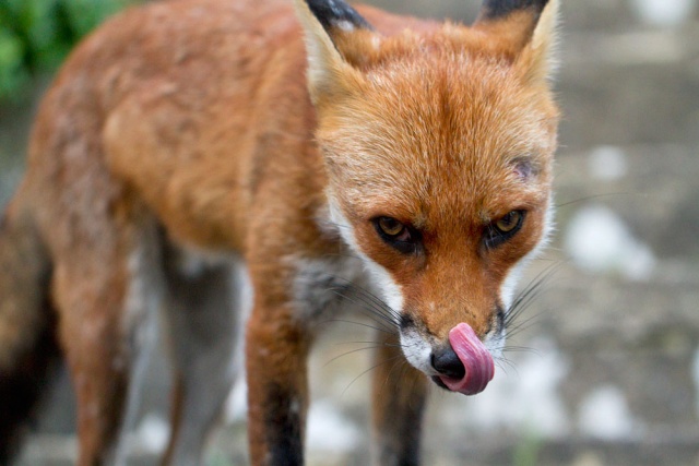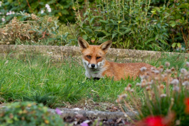 Another typical evening in the garden. It started with a fox as the light was fading. Shutterbug was outside, resting in the middle of the grass. He seems to enjoy his solitude.