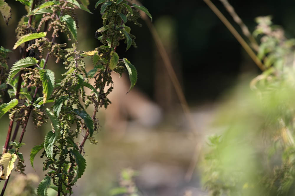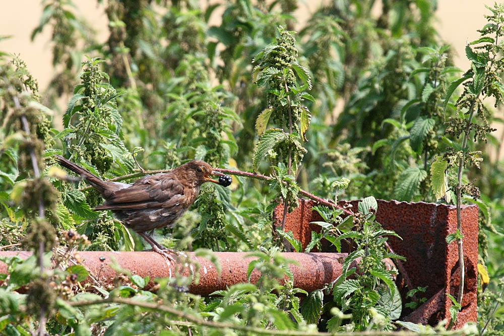 I'd taken a short diversion to a local field to see if any buzzards were around (they weren't), but I did come face to face with fox enjoying the early morning sun. It stood watching me from about 20 yards away. I slowly raised the camera, and of course it ran. Not a disaster in itself, but the autofocus picked out an intervening shrub. This is the result.