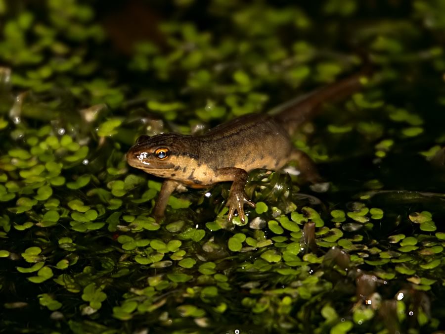 I heard some fox barking tonight, but saw nothing except this smooth newt which ventured to the leafy surface of the pond.