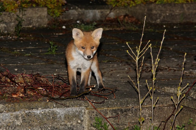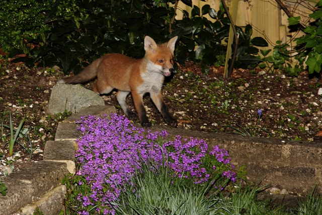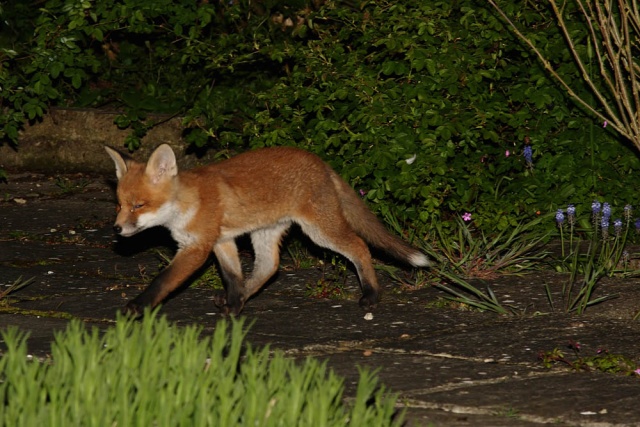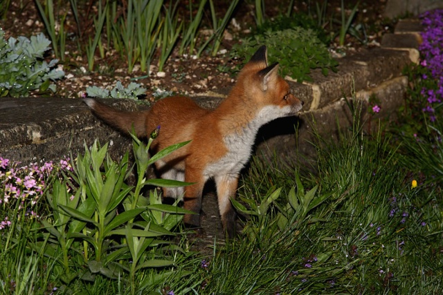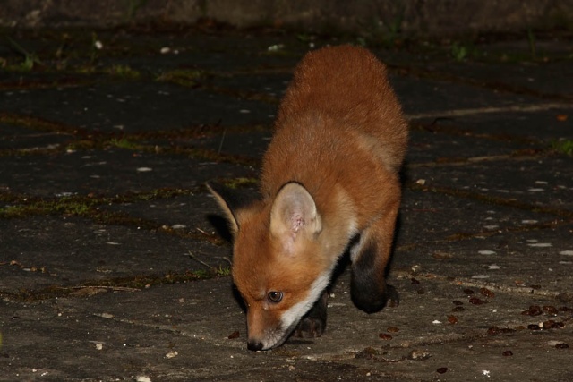 I took these shots in the early hours of Monday morning. The bold vixen was lurking at the front of the garden, leaving just one of the cubs ferreting around.