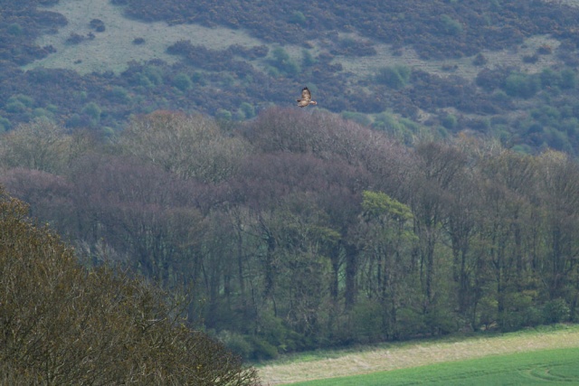 After several minutes circling on the far side of the valley, it eventually crossed the field and came close enough for a slightly more detailed shot.