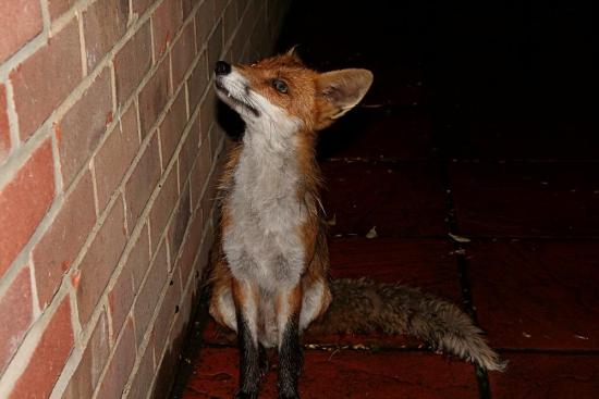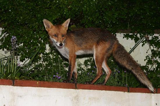 But a fox has to eat, and they do venture out in the wet. So it was that some time after midnight we heard a noise outside and sure enough the young fox was in the garden. Very wet, but otherwise at ease, and unlike the old dog fox he didn't seem too disturbed by the high winds.