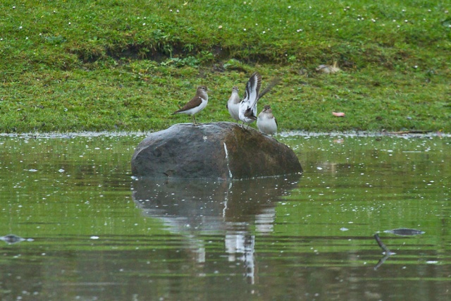 The next photos are definitely wild birds. Common sandpipers to be precise. Four of them, which is a large flock for this little pond.