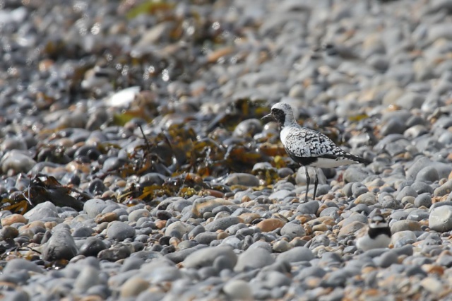 A few shots from this afternoon at Rottingdean. The tide was in (not my preferred time for visiting), which meant a hike in the direction of the Marina to find any shoreline. It proved a worthwhile visit. At first all I could see were some black-headed gulls nesting down among the sea weed. Then I spotted some movement. Plovers. Lots of ringed plovers (with plenty of juveniles among them). Among them one bird stood out, head and shoulders above the rest: a grey plover. Grey Plover