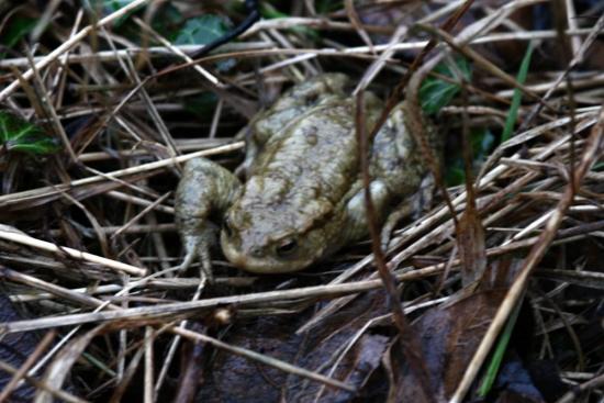 There's still no spawn in the garden pond, though the frogs are continuing to 'pair up'. I did come across more successful breeding in some local ponds earlier in the week, as well as a veritable swarm of breeding toads. That was on a dawn walk on Tuesday with the RSPB, in mist and rain. Absurdly I only took one photo, and that of a lone toad.