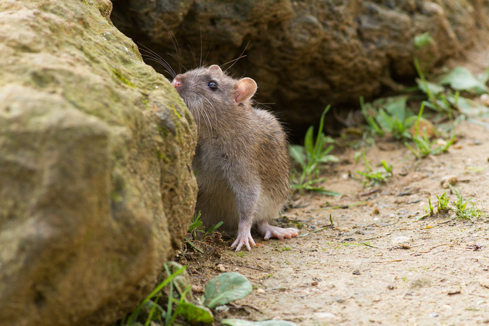 Another very wet day here, but once again there was a brief clearing of the clouds at lunchtime… I got out to the village pond at Falmer; and so did this little rat. It thought about climbing the rock… then thought again.