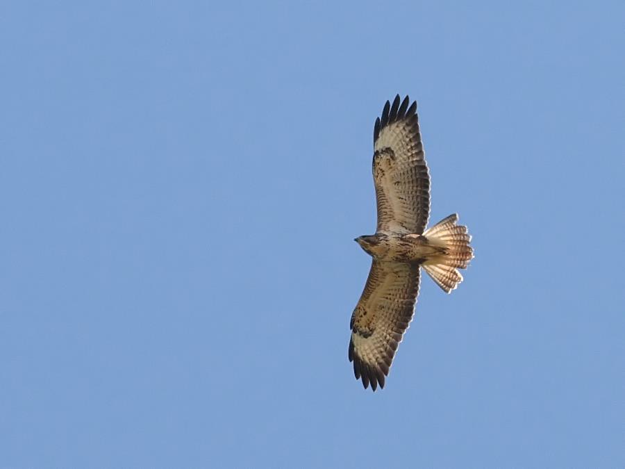 About 10 days ago I posted about a missed opportunity when I had the wide lens on the camera as a buzzard flew overhead in perfect conditions. Well today, I came 90% to correcting that miss when I was out with the 300mm lens and another buzzard came gliding overhead. Again the light was excellent and I managed several workable shots, of which this is probably the best.