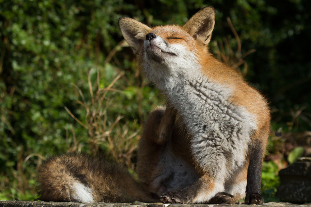 She’s been in and out of the garden all week, so it wasn’t a surprise when, late morning, we looked outside to see Pretty, the young fox, lurking in the garden. For the first few minutes she was cautious, running off into the hedge before slowly re-emerging, but gradually became more confident.