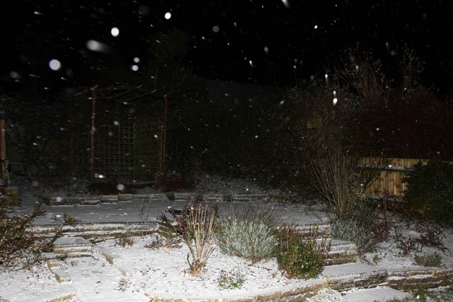Well the promised snow has arrived. It's been falling for several hours and looks like continuing through the night. The winds are quite strong as well, which will in all probability cause drifts across the roads around here, many of which cut across open fields. The snow begins to settle