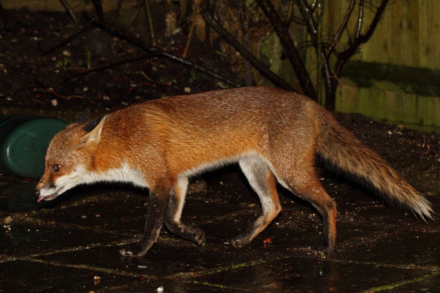 No sooner than I'd posted last night's blog than the young male fox appeared in the garden. It was wet. It was windy. He was skittish. I was determined (to get a photo or two).