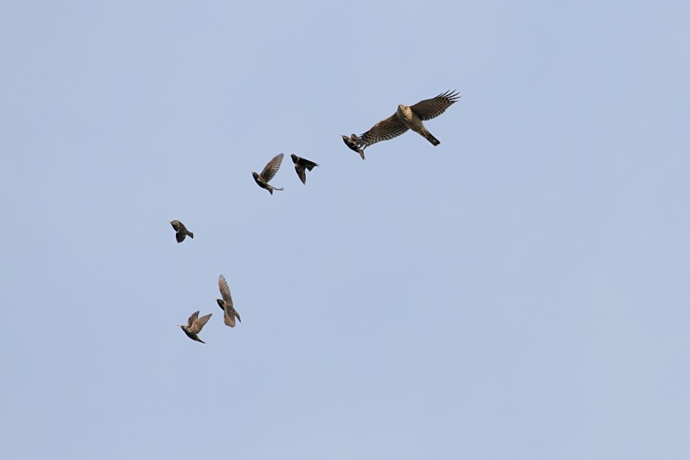 1. What a lucky catch! (Well, perhaps not for the starlings…) Great shot. I rarely get the lens focussed in time when a raptor goes overhead; having it all already set up must be marvellous!