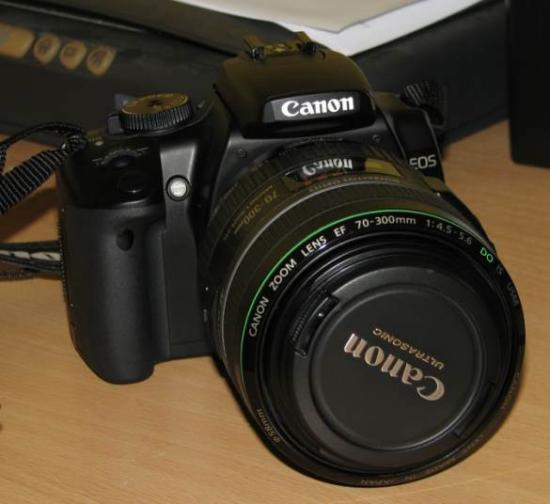 Well I bit the bullet and got myself a new camera today… the Canon EOS 400D (or Digital Rebel XTi as it's known outside the UK). I've spent most of the day learning (a) how to use the camera and (b) how to process RAW output. Oh and (c) realizing why photographers develop wrists like tree trunks. These things aren't light, though to be fair most of the weight is in the lens which in this case is a 70-300 zoom with diffractive optics and image stabilizer.