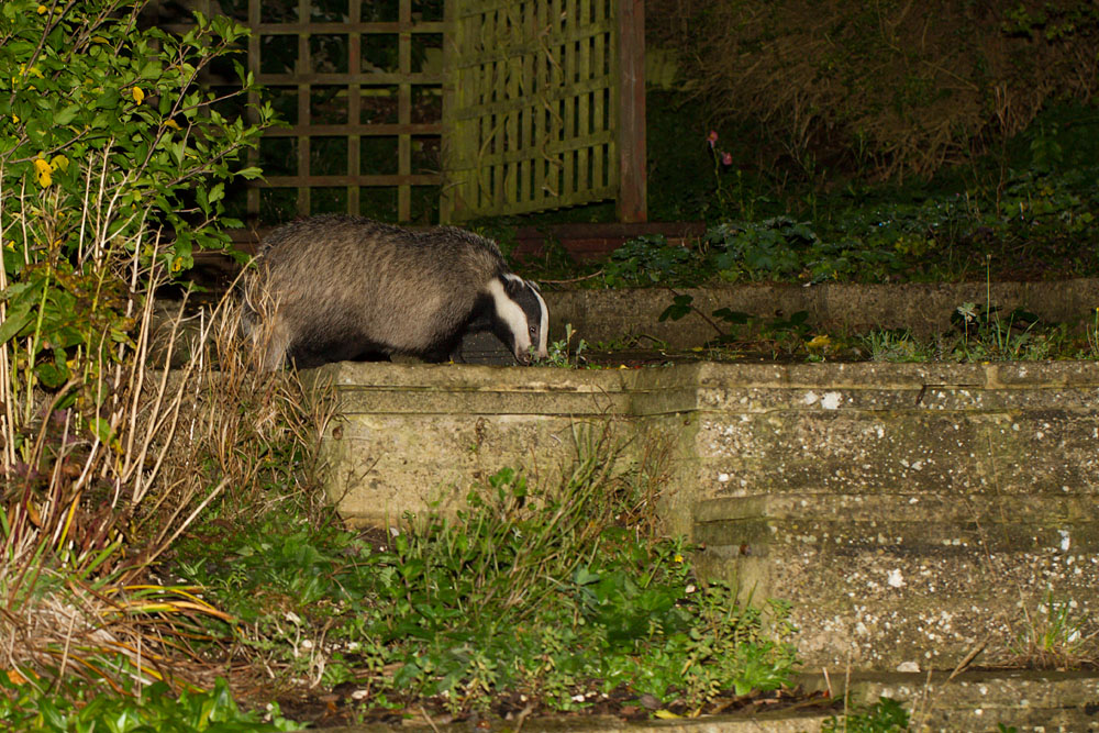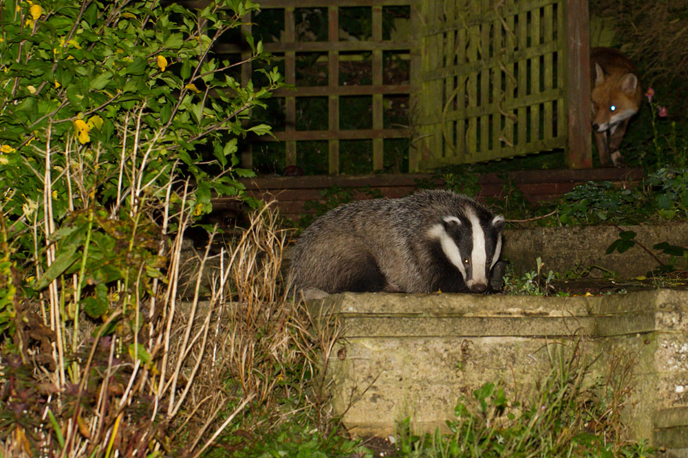 Thinking better of disturbing Brock, the fox quietly slipped across the pergola and retreated to a neighbouring garden. Wise fox.