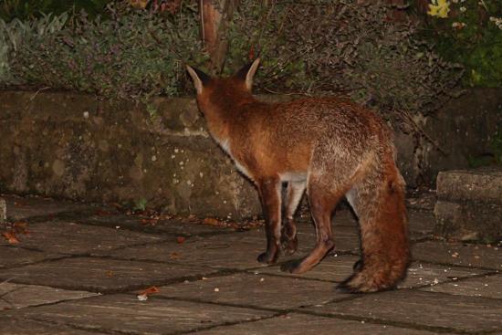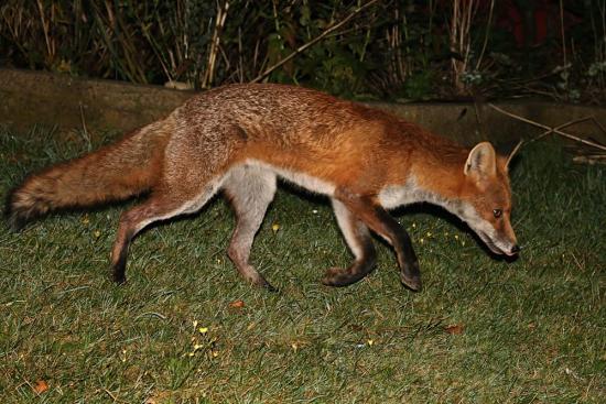 Yesterday I posted that the young fox had developed a limp in his left rear leg. Scrap that. Tonight he was holding his right fore-leg and emulating a bunny as he more or less hopped around on three legs. I've no idea what he's getting up to that's causing so many minor injuries, but he really should learn to take better care of himself. I do worry for him. Limping across the garden