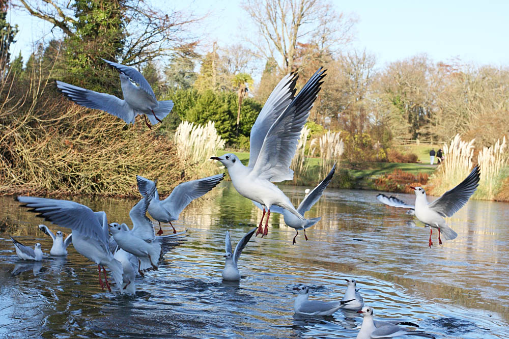 The gulls were the dominant bird of the day, indeed the weekend. These black-headed gulls were skating around on the pond, and flocking for the few scraps thrown by visitors.Flocking gulls