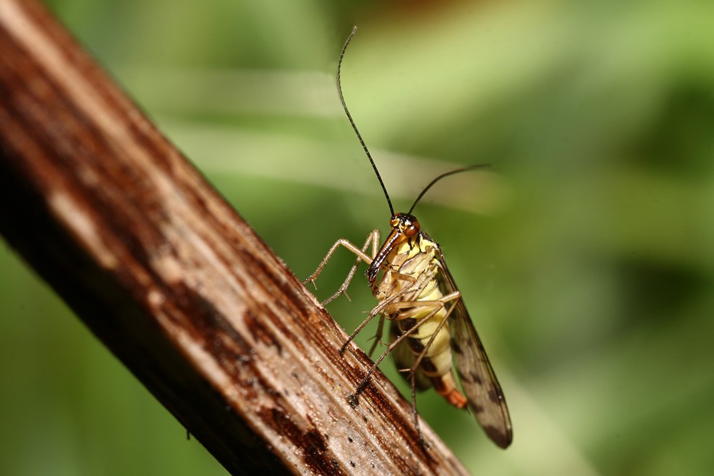 That was this evening. Earlier today I spent an hour by the dew pond. No dragonflies today but a good selection of beetles and bugs, including this scorpion fly.