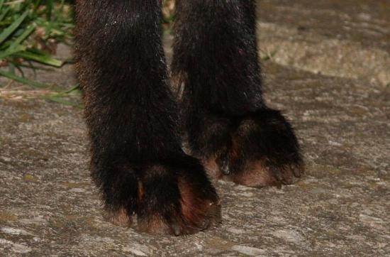 24 Aug 2007Possibly, or perhaps also a question of how much dirt is accumulated. I've just been looking back at various pictures of his feet and sometimes the claws appear paler than others! I'm sure they looked pretty white when I looked through binoculars on one occasion, though. Kelly has extremely dark claws and cutting them is always a fraught exercise.