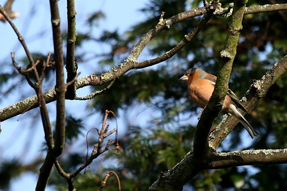 One of my favourite of the smaller birds is the male chaffinch. It's a wonderfully bright bird, and relatively bold.