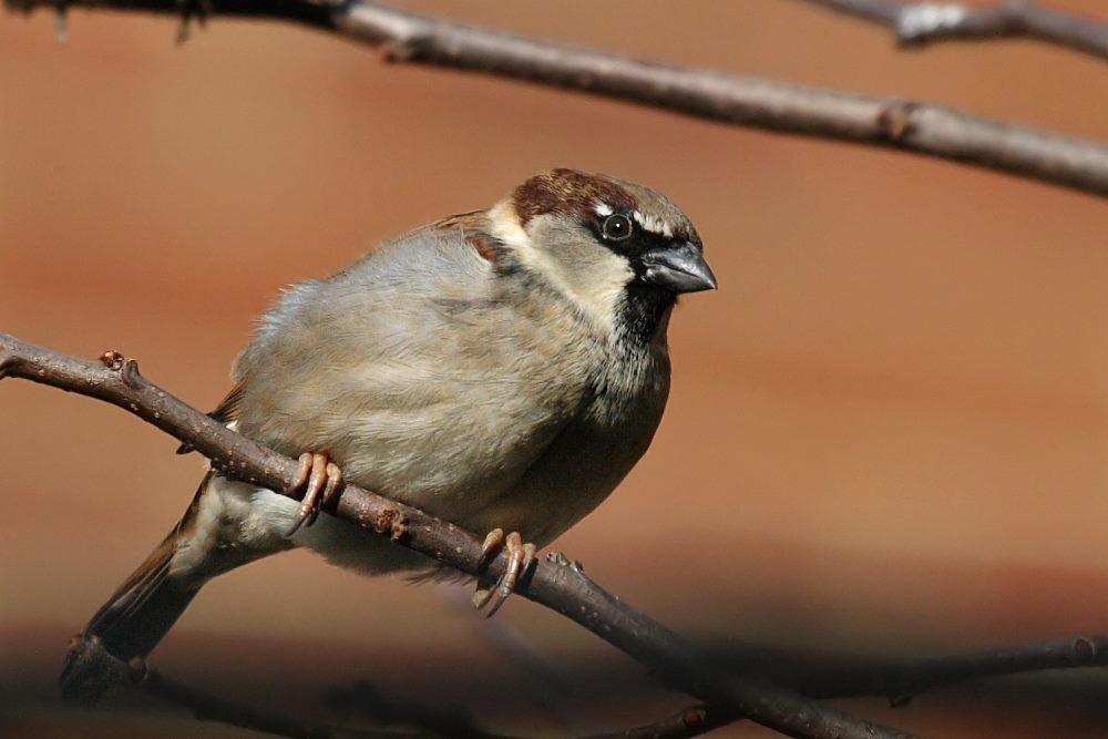 Another of the smaller species is the sparrow. These tend to congregate in small flocks, and there's a sheltered garden at work where they are guaranteed to gather and flit among small decorative trees.