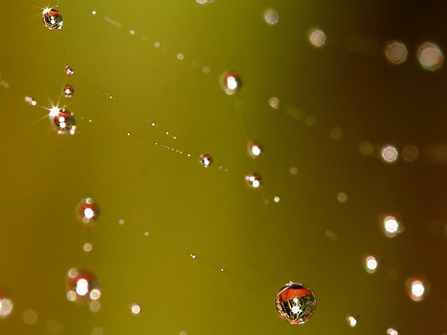 13 Oct 2007Pretty aren't they! All taken on a spider's web hanging across some rosemary in a bed at the front of the garden. If you look closely you can see the rosemary (inverted) inside the droplets. the effect is best on the first shot.