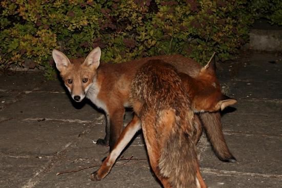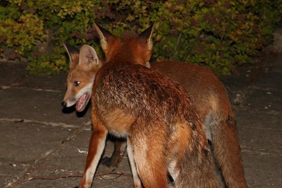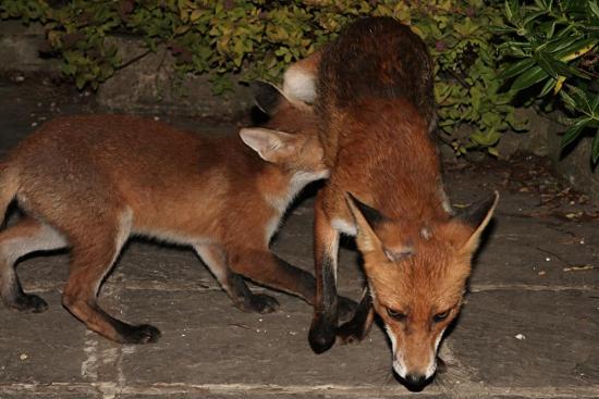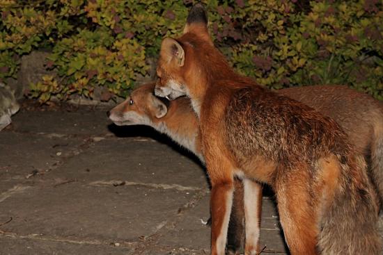 I've just come in from watching Roofy and the cub out in the garden for a good 40 minutes (and 70+ photos). Roofy showed up first, but something startled him and he shot across the garden and away. The cub then emerged and was sniffing around the back of the garden while we were sitting low down watching. I only realized Roofy had returned when I felt a firm nudge on my shoulder! Cheeky blighter 🙂 And it sure made me jump! Which made the foxes run.