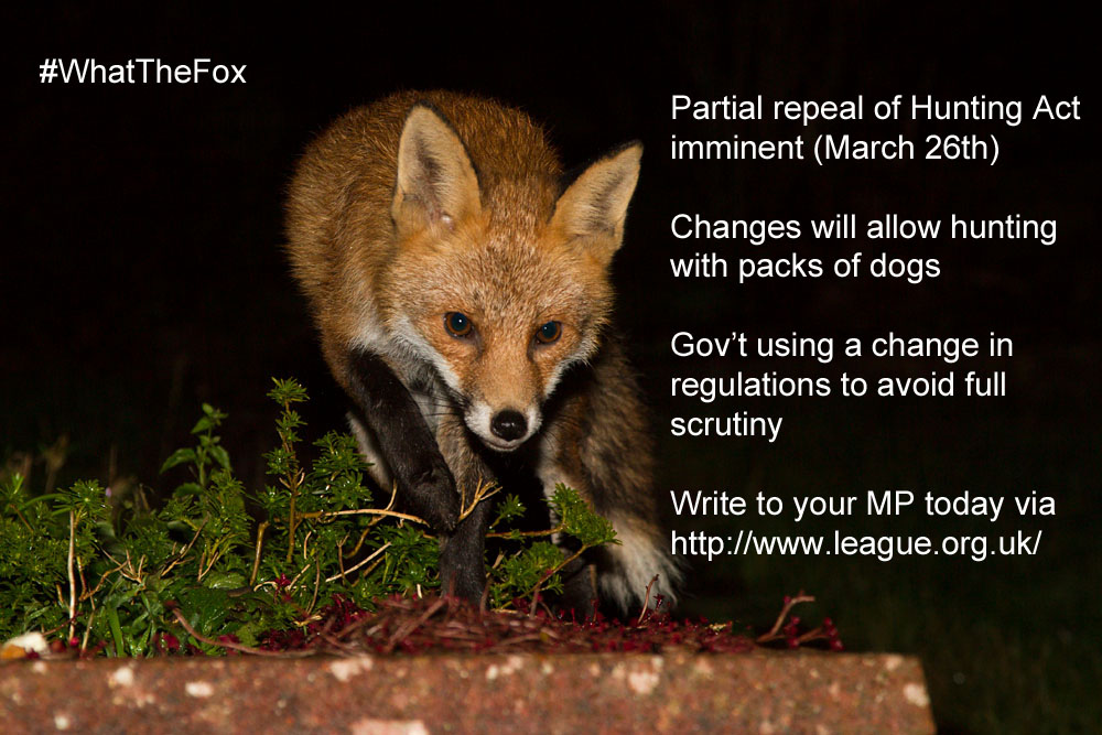 Close watchers of this blog may have seen a new twitter feed appear in the side bar over the past couple of days called #WhatTheFox. It’s a campaign hashtag to prevent changes to the Hunting Act, the law through which hunting with dogs is banned in the UK.
