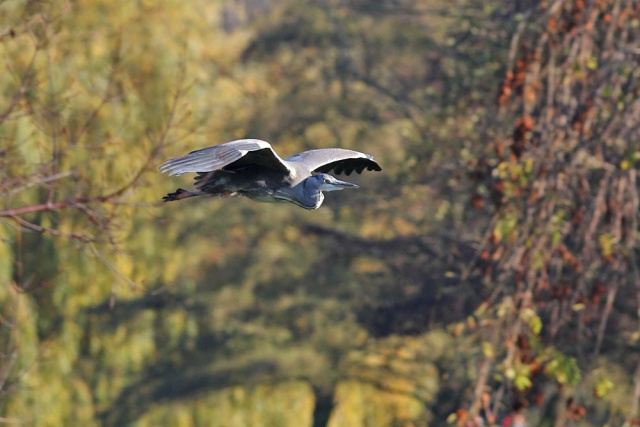 I'll skip the rivals (squirrels) for today, but will include one shot of a heron caught taking a short flight between the waterside trees.