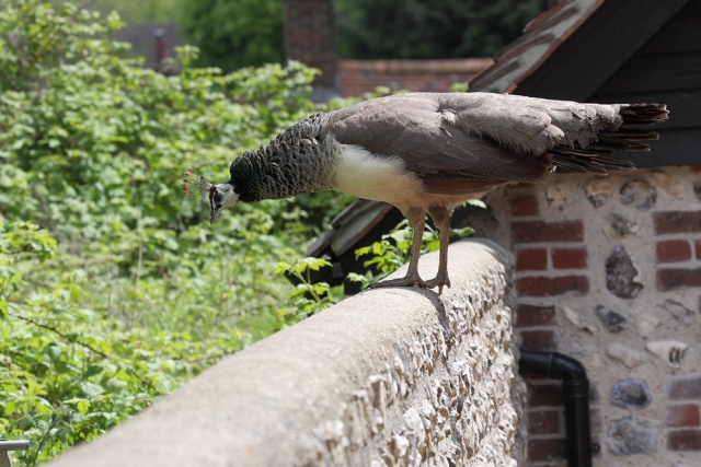 Camera note: all shots taken with the Canon 40D and EF 100-400mm f/4.5-5.6L USM IS lens. Pictures taken with the permission of the householder. The peahen is a regular visitor.