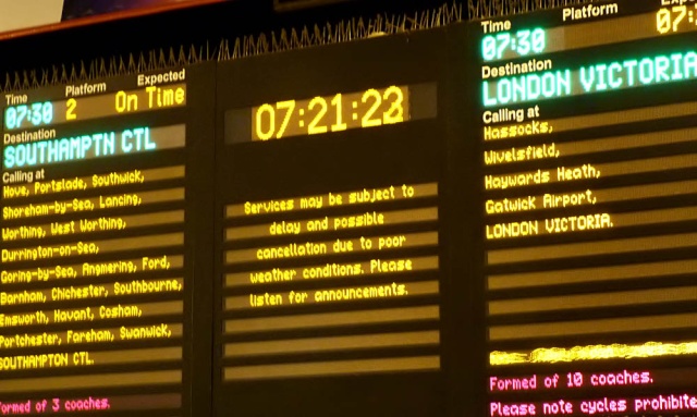 For me this started early on Tuesday morning. There was tiny amount of snow from the night before, but even so the departure board at the station heralded the first warning of what was to come.