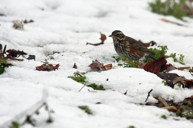 The roads are almost back to normal, but the remains of the snow are still sitting on open ground and even the shy species of bird are venturing into the more populated areas in search of food. Among these are redwings and fieldfares, and – according to reports – waxwings (though I've not been fortunate enough to catch sight of one). There were plenty of redwings and fieldfares though. I took these shots at lunchtime, in fairly awkward light.