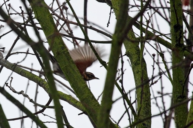 You can spot a redwing by the colour on the underside of the wing. Redwing