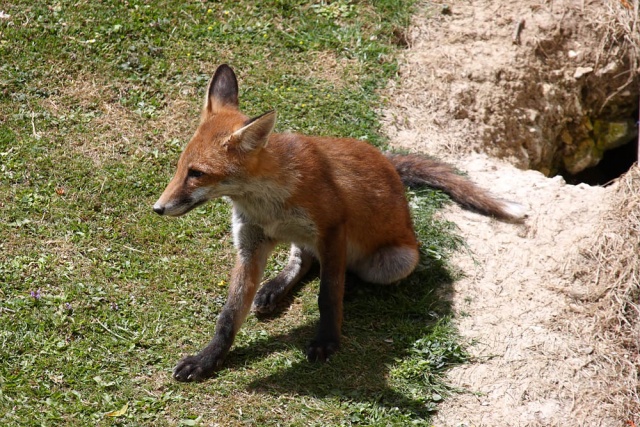 I wasn't able to stay around to wait for lunch to be delivered, and the cub had much the same idea and soon disappeared back down the fox hole.
