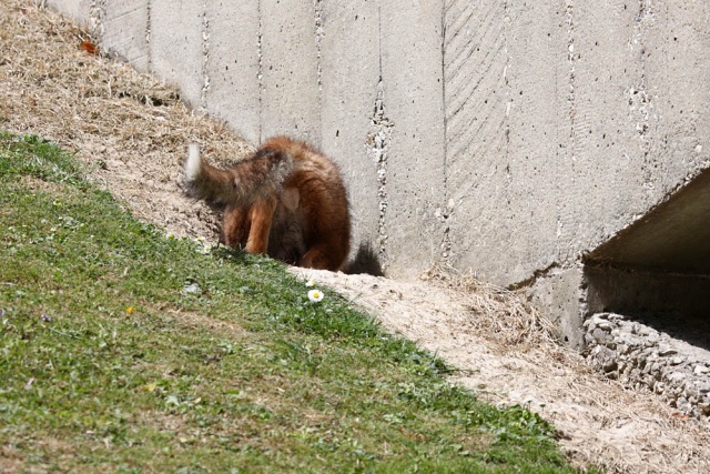 The first encounter was late morning. I was heading for a meeting and something caught my attention. I had just passed one of the footpath bridges when I took a second look. There was something just jutting out from beneath the line of the bridge. Something suspiciously like a fox's leg.