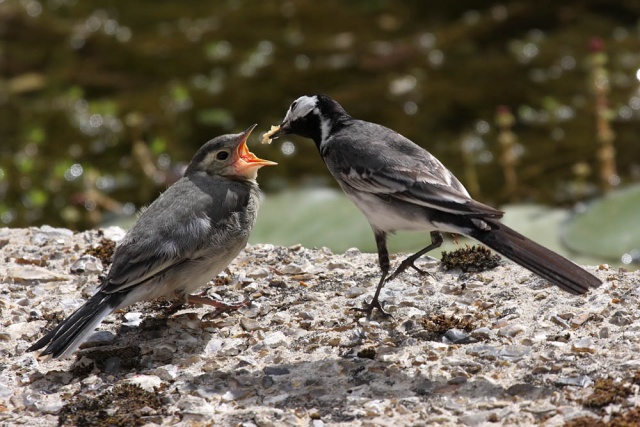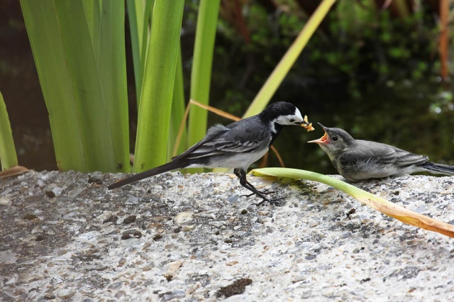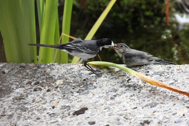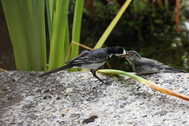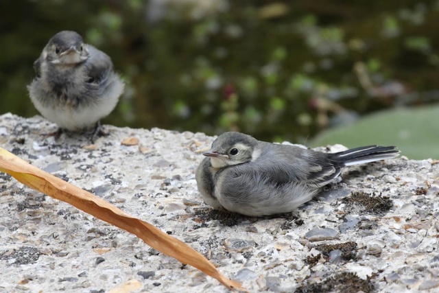 Late afternoon I was working on my computer and glanced outside. A pair of pied wagtail fledglings were sitting on the low wall of an ornamental pond. I opened my window and took a couple of shots.